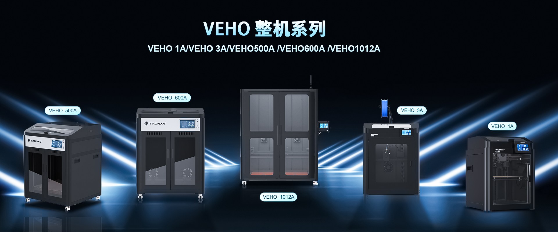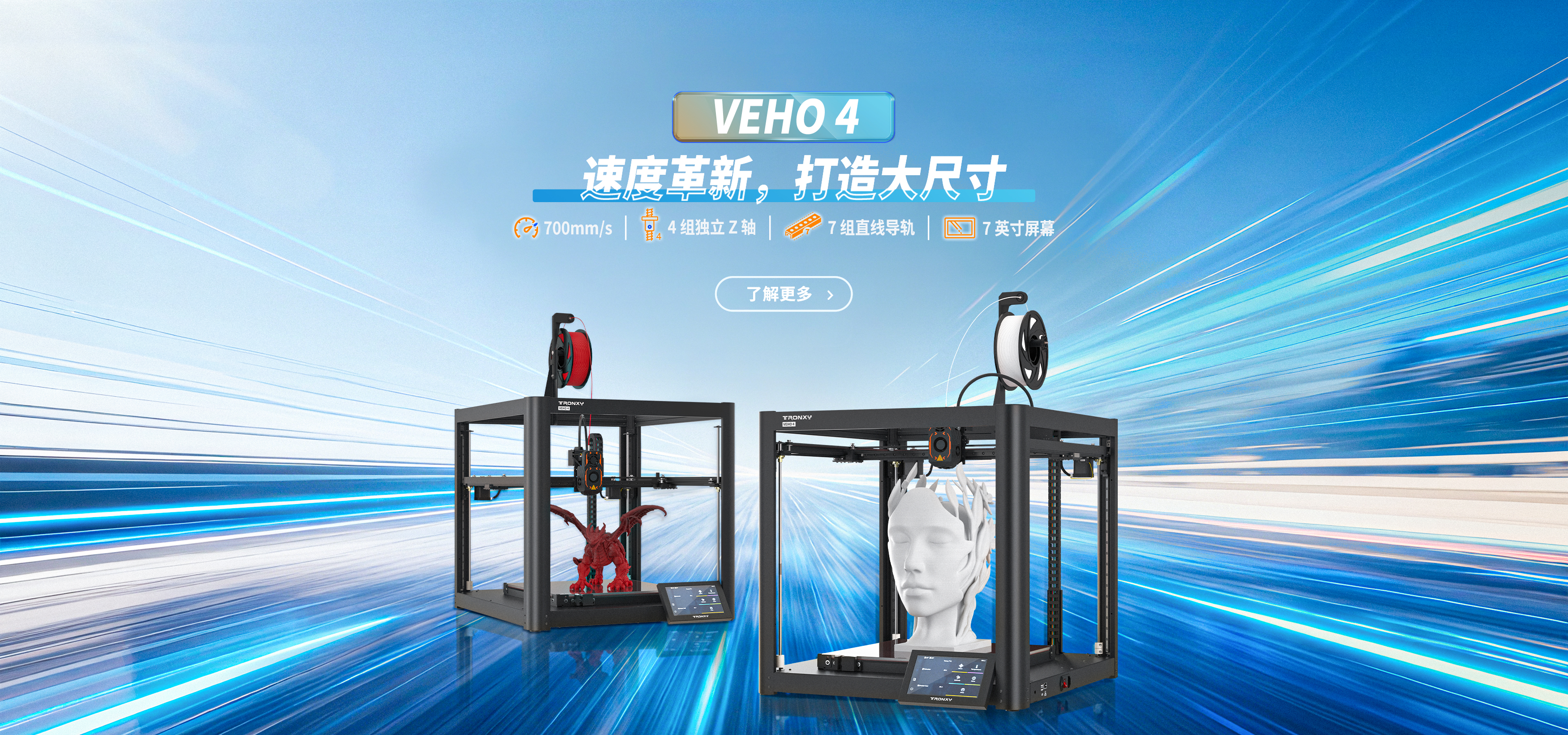 自主設計,定制生產線,可生產從桌面級到工業級等 尺寸從180mm到1.6米的3D打印機